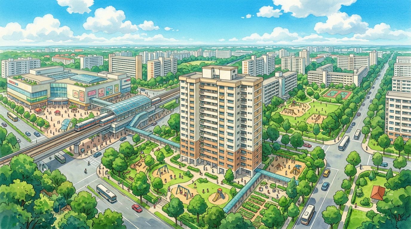 - Shared facilities: Void decks for community events, nearby playgrounds.