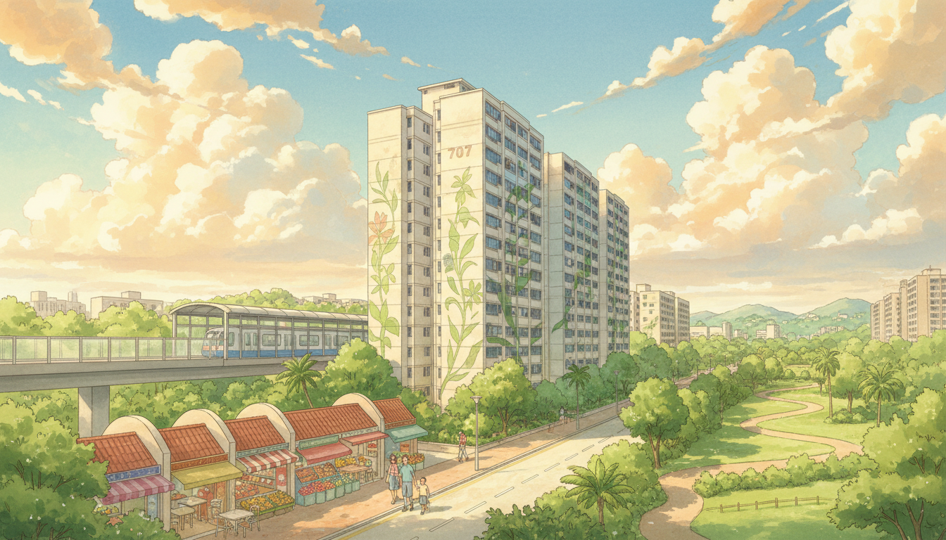 Block 707 at Choa Chu Kang Street 53 is a mature HDB development built in the 1990s, featuring primarily 4-room and 5-room flats popular among families. Located in the heart of Choa Chu Kang, this block benefits from the area's kampung spirit, where neighbours foster kindness and tolerance, as shared by long-time residents.