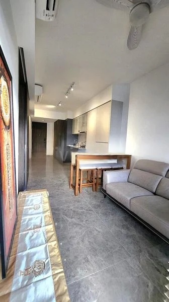 Step into a world of modern elegance with this brand-new condominium at THE M. As you enter, the abundant natural light floods through the floor-to-ceiling windows, illuminating the sleek grey marble-look floor tiles that create a seamless flow throughout the open-plan living and dining area. The breathtaking views of the city skyline, including the iconic Marina Bay Sands, provide a stunning backdrop that enhances the ambiance of this exquisite unit.