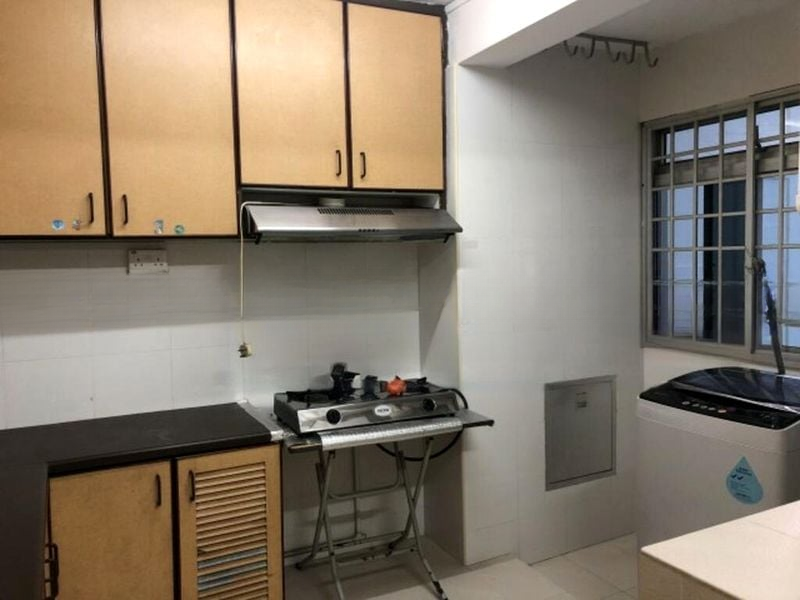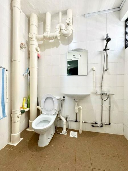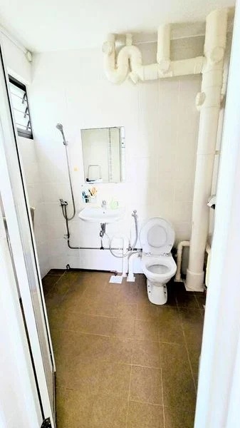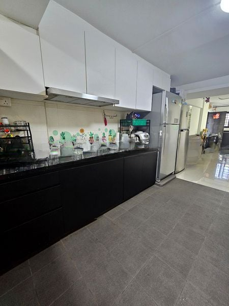 Step into this inviting HDB flat where classic terrazzo flooring greets you, exuding a sense of warmth and nostalgia. The open-plan living and dining area, bathed in moderate natural light, flows seamlessly through sliding glass doors to a cozy balcony, perfect for unwinding after a long day.