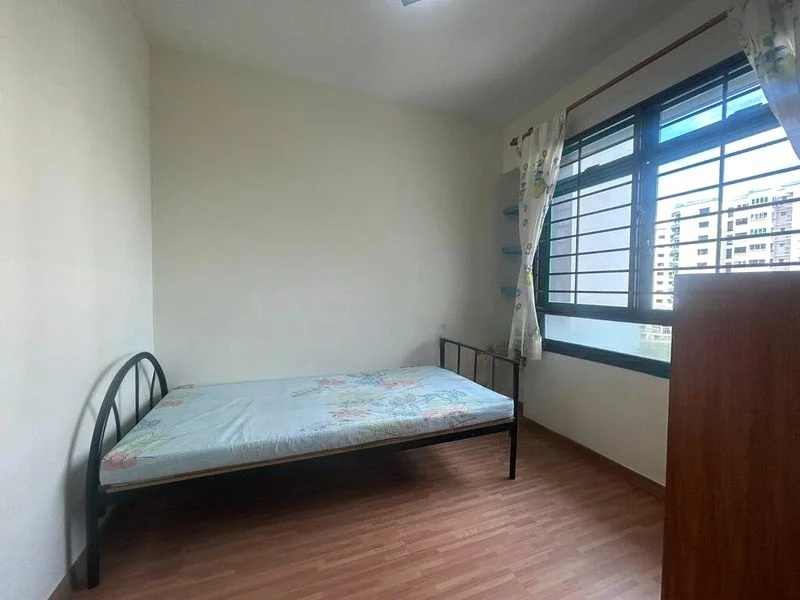 This well-maintained 3-bedroom flat boasts an open-concept kitchen equipped with a breakfast bar, perfect for casual dining and entertaining. The master bedroom features a double bed with a safety rail, while the common bedrooms offer versatile spaces for family or guests. Ceiling fans in all rooms ensure comfort, and the built-in shoe cabinet at the entrance provides practical storage.