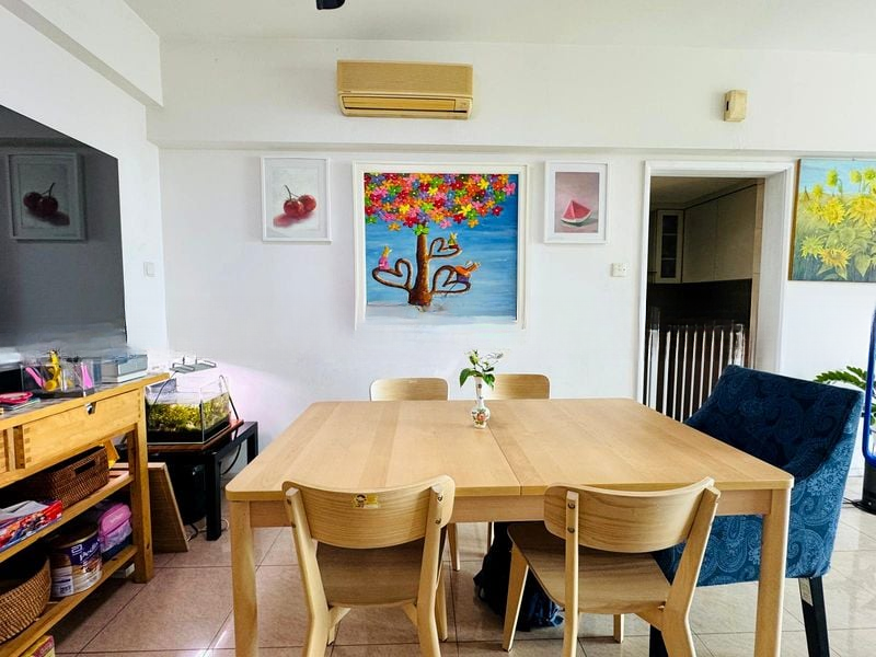 Step into this well-maintained 4-bedroom unit at Regent Grove, where a sense of warmth and functionality greets you. The moderate natural light filters through large windows, illuminating the practical layout adorned with parquet flooring and a large wall mirror that enhances the spacious ambiance. Enjoy views of neighboring buildings that add an urban charm to your living experience.