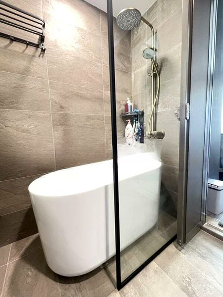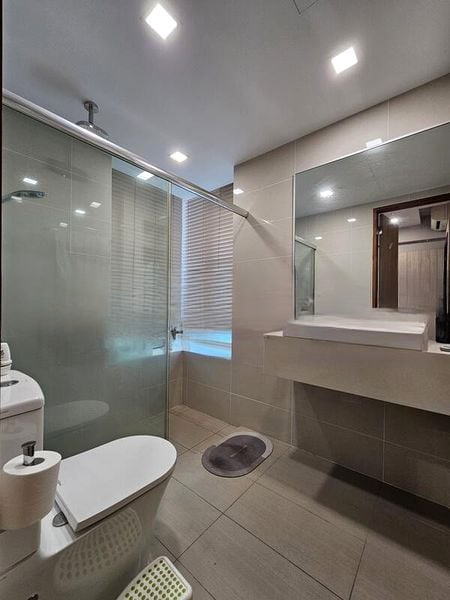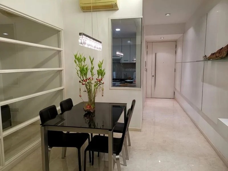 Step into a warm and inviting atmosphere where natural light dances across the marble flooring of the living room. The recessed ceiling with cove lighting enhances the cozy ambiance, while the mirror feature wall creates an illusion of spaciousness, making this unit feel like a serene retreat amidst urban living. Enjoy the lush greenery views from your dual balconies, perfect for unwinding after a long day.