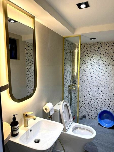This spacious 4-bedroom unit boasts a well-thought-out layout, with standout features including a walk-in shower with glass partition, a built-in library with a sliding ladder, and floor-to-ceiling wardrobes that offer ample storage. The study is perfect for work or leisure, with built-in shelving and a large window that invites light, while the staircase area showcases wooden steps and overhead storage cabinets, adding to the home's functionality.