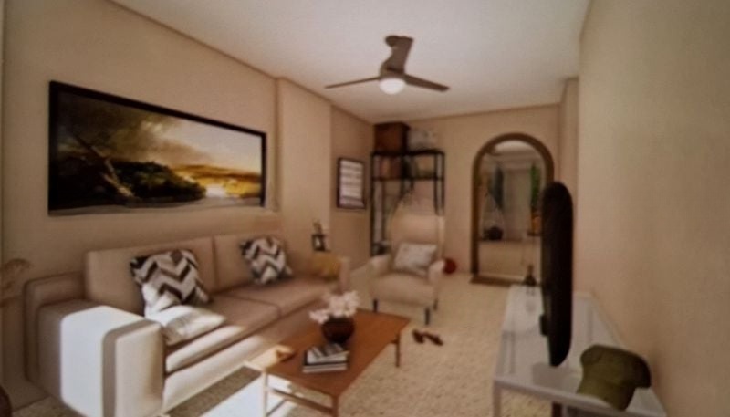 Step into this inviting 2-bedroom flat at Marine Drive, where the charm of original finishes meets a functional layout. The moderate natural light filters through windows, illuminating the living and dining area, which features tiled flooring and a comfortable leather sofa. Enjoy the serene views of greenery that provide a peaceful backdrop to your daily life.