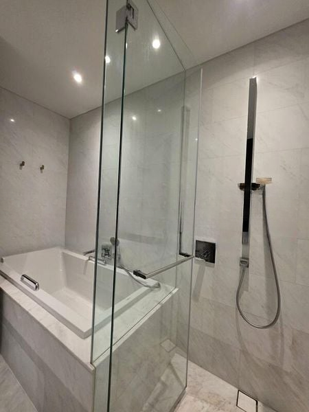 Step into a world of modern elegance as you enter this beautifully designed unit at South Beach Residences. The abundance of natural light floods through the floor-to-ceiling windows, showcasing breathtaking views of the city skyline. The marble flooring and gold feature wall create a sophisticated ambiance that is both inviting and luxurious.