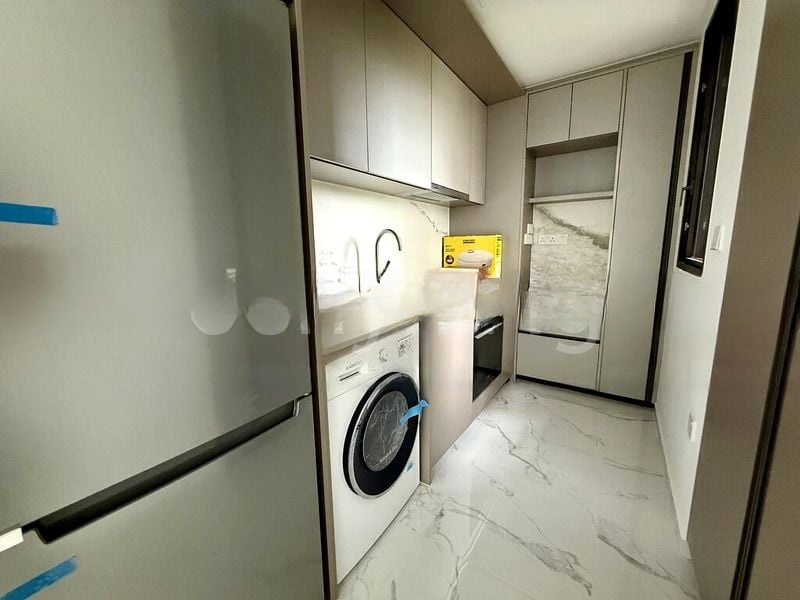 Step into this brand-new, bright and airy unit at LIV @ MB, where floor-to-ceiling windows invite abundant natural light and frame stunning views of the city skyline and landscaped gardens. The open-plan living and dining area, adorned with elegant marble-look porcelain floor tiles, creates an inviting ambiance that feels both spacious and sophisticated.