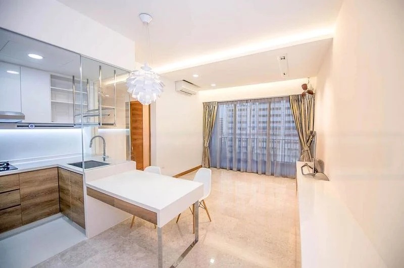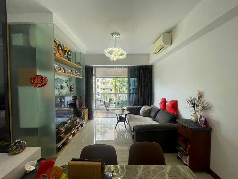 Step into a bright and airy sanctuary at SEASTRAND, where abundant natural light floods the space, highlighting the modern finishes and inviting ambiance. The unblocked greenery view from the balcony, adorned with invisible grilles and artificial turf, creates a serene escape, while the designer pendant lighting in the dining area adds a touch of elegance.