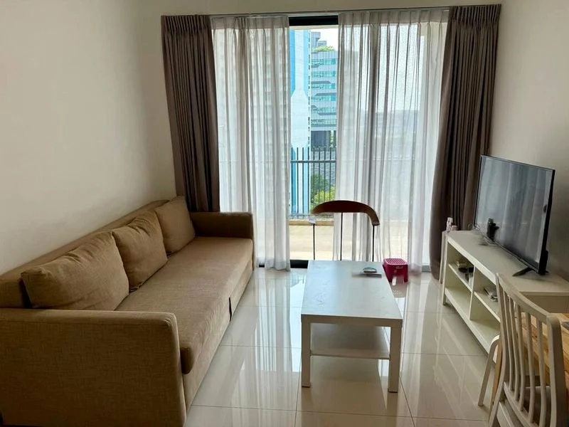 Step into a bright and airy sanctuary at J Gateway, where abundant natural light floods through floor-to-ceiling windows, offering breathtaking views of the city skyline and lush greenery. The open-concept living room invites you to unwind, seamlessly connecting to a private balcony that enhances the tranquil ambiance.