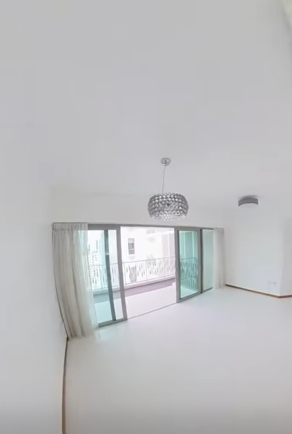Step into a bright and airy sanctuary at TREVISTA, where abundant natural light floods the open-concept living space, accentuated by modern decorative chandeliers and large sliding glass doors that lead to a spacious balcony. The stunning cityscape and lush greenery views create an inviting ambiance, perfect for relaxation or entertaining.