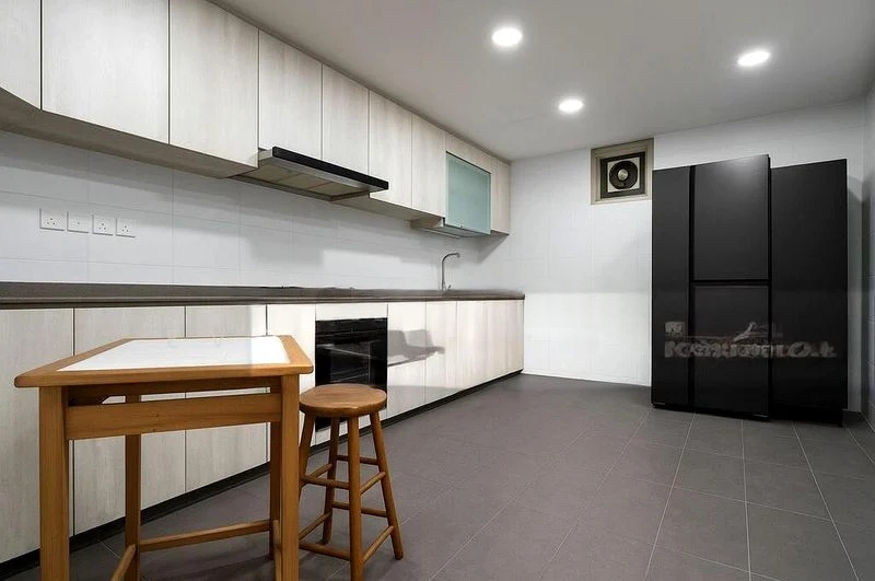 Step into a sanctuary of modern minimalism at Orchid Park Condominium, where the ambiance is defined by clean lines and a soothing palette. The living area welcomes you with natural light filtering through large windows, illuminating the full-height built-in TV console and cove lighting that creates an inviting atmosphere. Enjoy views of lush greenery and neighboring buildings that enhance the sense of space and tranquility.
