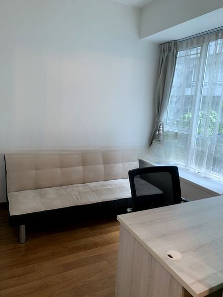 Step into a sanctuary of light and elegance at SUITES AT ORCHARD. The moment you enter, you are greeted by an abundance of natural light streaming through the floor-to-ceiling windows, illuminating the spacious living area adorned with a stunning crystal chandelier. The marble-look floor tiles add a touch of sophistication, while sheer and blackout curtains allow you to control the ambiance, creating a bright and airy atmosphere.