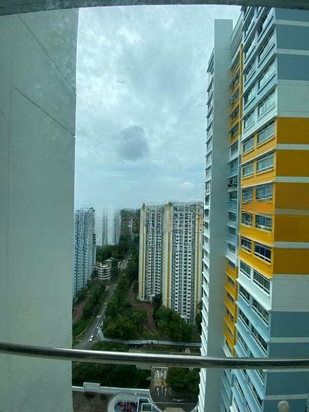 Step into this inviting 1-bedroom flat, where warm wood-look laminate flooring and ample natural light create a cozy ambiance. The large windows frame picturesque views of lush greenery and nearby HDB blocks, making every moment spent here feel serene and connected to nature.