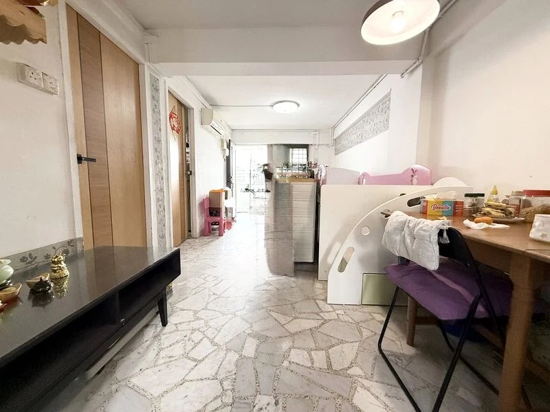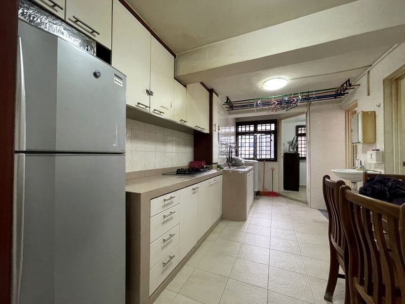 Step into this inviting 3-bedroom HDB flat at SIMS PL, where the warm ambiance greets you with moderate natural light filtering through the windows. The wood-look laminate flooring adds a touch of elegance, while the ceiling fan and wall-mounted air conditioning ensure comfort throughout the year. Enjoy views of lush greenery and neighboring blocks, creating a serene environment in the heart of Geylang.