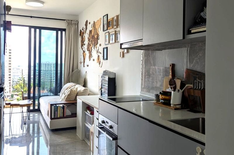 Step into a world of modern elegance as you enter this beautifully renovated unit at The Garden Residences. Bathed in abundant natural light, the open-concept living area features marble-look floor tiles and designer pendant lights, creating a warm and inviting ambiance. Enjoy stunning views of lush greenery and the urban landscape from your balcony, perfect for unwinding after a long day.