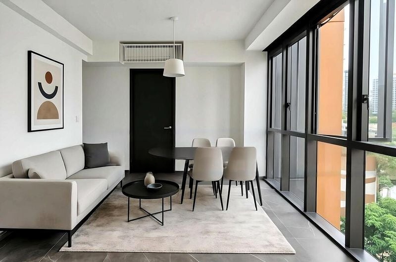 Step into a world of modern elegance as you enter this brand-new 2-bedroom unit at LIV @ MB. The abundant natural light floods through the floor-to-ceiling windows, illuminating the sleek marble-look floor tiles and creating a warm, inviting ambiance. Enjoy breathtaking views of the city skyline and lush greenery from the comfort of your living space, making every moment spent here a visual delight.