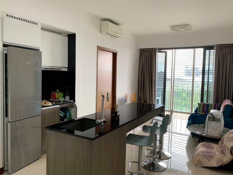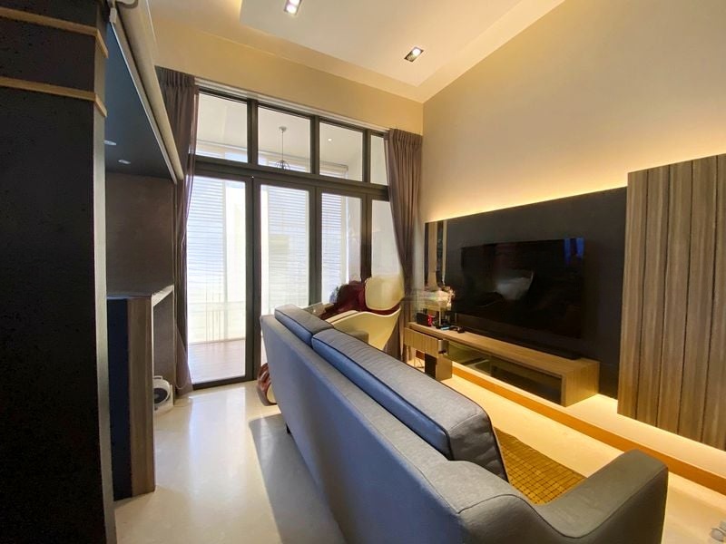 Step into this stunning designer unit at Seahill and be greeted by an abundance of natural light streaming through the floor-to-ceiling windows, illuminating the modern minimalist finishes throughout. The high ceiling and dark feature wall in the living room create a striking contrast, while the custom loft structure adds a unique touch, offering both style and functionality.