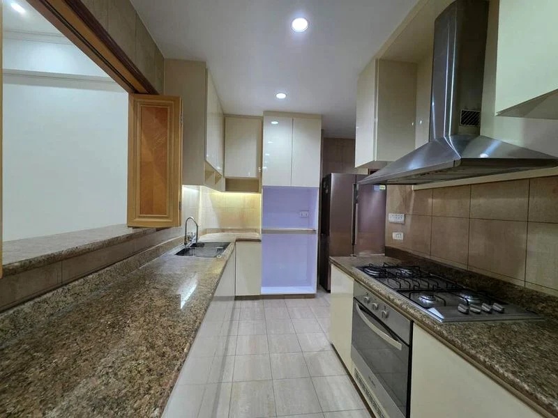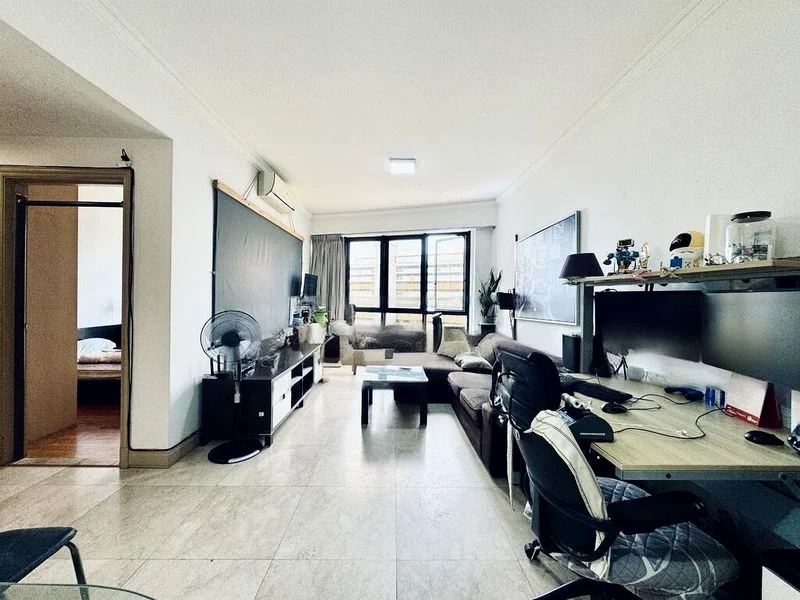This well-maintained 3-bedroom unit boasts a thoughtful layout, featuring a spacious living room with balcony access, perfect for entertaining. The master bedroom, adorned with herringbone parquet flooring and panoramic windows, offers a serene escape. The bathrooms are designed for relaxation, showcasing a full-sized bathtub and modern fixtures that elevate your daily routine.