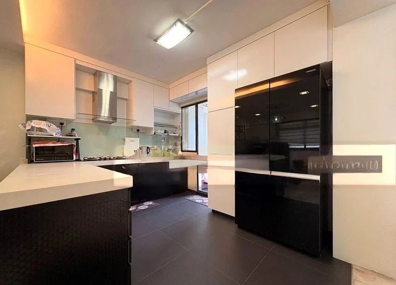 Step into this beautifully maintained HDB unit and be greeted by an abundance of natural light that fills the open-concept living and dining areas. The bright ambiance is complemented by cove lighting and a striking purple accent wall, creating a vibrant yet inviting atmosphere. Enjoy unblocked views of lush greenery and the serene lake from your high-floor vantage point, making every moment spent here a visual delight.