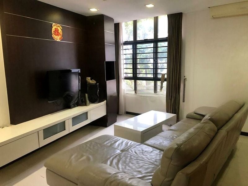 Step into this well-maintained 3-bedroom HDB flat and be greeted by a cozy ambiance that invites you to unwind. The living room, adorned with a dark wood TV feature wall and large windows, fills the space with natural light while offering serene views of lush greenery. The functional layout is complemented by stylish finishes, including parquet flooring in the bedrooms and a chic black glass dining table in the dining area.