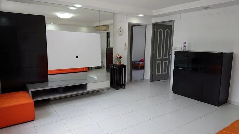 Step into a well-maintained sanctuary at 45 Marine Cres, where a large mirror wall in the living room reflects the natural light that fills the space, creating an inviting ambiance. The white tiled flooring complements the orange sofa set, while recessed ceiling lights enhance the modern feel of this functional unit. Enjoy views of the tranquil neighborhood from the comfort of your home.