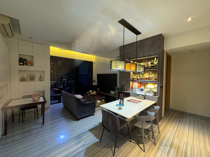 Step into a world of modern elegance as you enter this beautifully renovated 3-bedroom unit at CUBE 8. The open-concept living and dining area welcomes you with its marble-look striped floor tiles and designer pendant lighting, creating a cozy yet sophisticated ambiance. Enjoy unblocked panoramic views of the city skyline from the spacious balcony, perfect for evening relaxation.