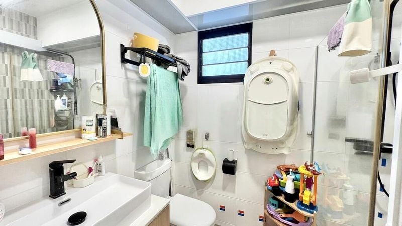 Step into a serene oasis where modern minimalist design meets abundant natural light. This beautifully renovated 3-bedroom HDB flat at 608A Tampines Nth Dr 1 welcomes you with polished tile flooring and large windows draped in full-length curtains, framing stunning views of greenery and the urban landscape beyond. The ambiance is both inviting and sophisticated, making it the perfect retreat from the hustle and bustle of city life.