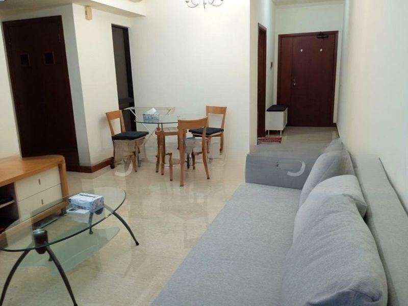 Step into this inviting 2-bedroom unit at The Mayfair, where the warmth of parquet flooring meets the practicality of a functional layout. Natural light filters through large windows adorned with sheer curtains, creating a cozy ambiance that feels both lived-in and welcoming. Enjoy views of neighboring buildings that remind you of the vibrant urban life just outside your door.