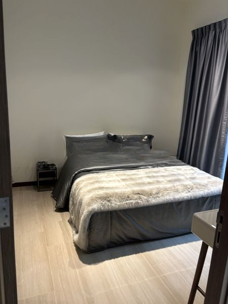 Step into a sanctuary of modern minimalism, where abundant natural light floods through floor-to-ceiling windows, illuminating the polished tile flooring and enhancing the urban and greenery views. The open-concept living area invites you to relax and unwind, while the dedicated study nook offers a perfect space for productivity.