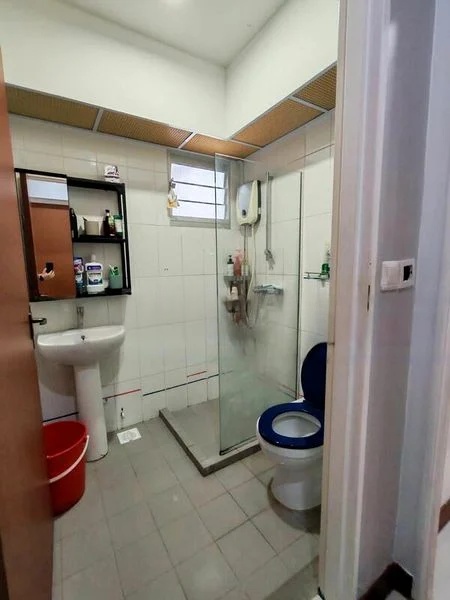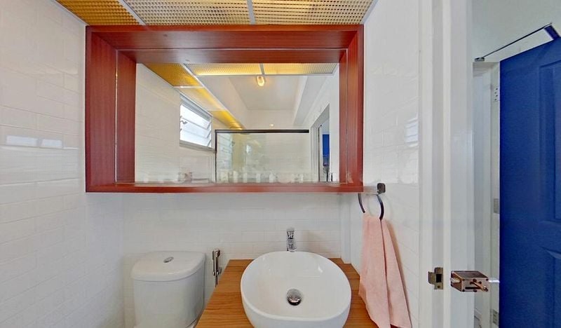 Step into a world of elegance as you enter this well-maintained 3-bedroom HDB unit at 812B Choa Chu Kang Ave 7. Bathed in abundant natural light, the airy ambiance is enhanced by designer finishes, including striking blue accent walls and wooden vanity countertops that create a warm and inviting atmosphere. The patterned bathroom tiles and vessel sink add a touch of sophistication, making every corner a visual delight.