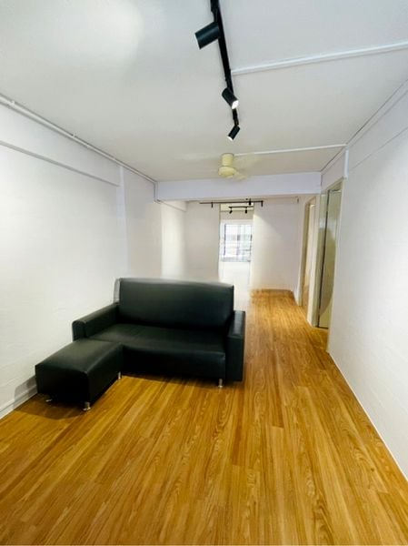Step into this spacious HDB unit where original features evoke a sense of nostalgia. The moderate natural light filters through large windows, illuminating the vintage patterned floor tiles in the kitchen and the classic wall tiles in the bathroom. The ambiance is basic yet functional, offering a canvas for your creativity.