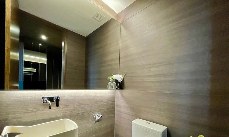 Step into a world of modern luxury as you enter this exquisite 2-bedroom unit at Lloyd Sixtyfive. Bathed in abundant natural light, the open-concept living area boasts a striking double-volume ceiling and floor-to-ceiling windows that frame breathtaking views of lush greenery and the city skyline. The ambiance is elevated by a designer bubble chandelier and elegant wood-textured feature walls, creating a warm yet sophisticated atmosphere.