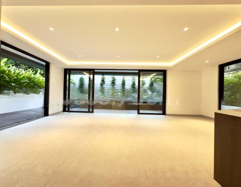 Step into a world of modern elegance as you enter this beautifully maintained landed home. The designer finishes, including marble-patterned wall tiles and wood-look flooring, create a harmonious blend of style and comfort. Natural light pours through the floor-to-ceiling windows, illuminating the spacious living areas and offering serene views of the private swimming pool and lush greenery beyond.