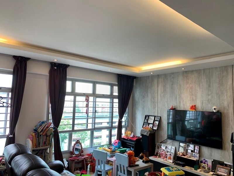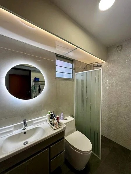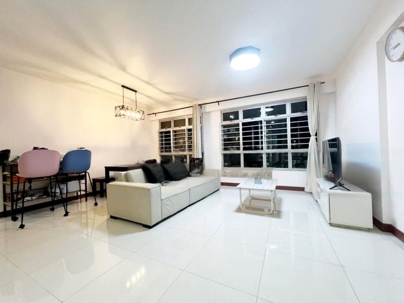 Step into this beautifully renovated 3-bedroom flat at 443B Fajar Rd and be greeted by a harmonious blend of modern aesthetics and comfort. The living area, adorned with a false ceiling and cove lighting, exudes a warm ambiance, while the laminate feature wall adds a touch of elegance. Natural light filters through the windows, offering views of lush greenery and neighbouring HDB blocks, creating a serene backdrop for your daily life.
