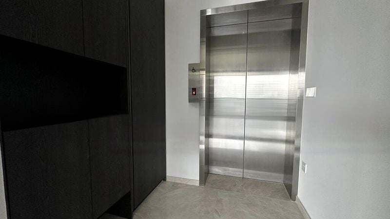 This 1-bedroom unit features a well-thought-out layout with a spacious living room that seamlessly connects to the kitchen, equipped with integrated Bosch appliances and minimalist cabinetry. The bedroom boasts wood-look laminate flooring and built-in wardrobes, ensuring ample storage. The bathroom is a luxurious retreat with marble-look wall tiles, a rain shower, and a stylish vessel sink, perfect for unwinding after a long day.