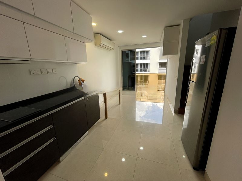 Step into a world of modern elegance as you enter this beautifully renovated duplex unit at Centra Residence. Bathed in abundant natural light, the open-concept living space features polished floor tiles and a seamless flow to the wood-look balcony, offering stunning urban views that create a serene ambiance.