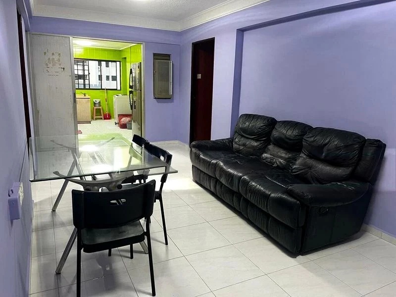 Step into a serene oasis where modern minimalism meets urban charm. This well-maintained 3-room HDB flat greets you with a bright and airy ambiance, accentuated by arched doorways and a stylish leather sofa in the living room. The large windows invite natural light, creating a warm and inviting atmosphere throughout the space, while the urban views of neighboring blocks add a unique touch to your living experience.