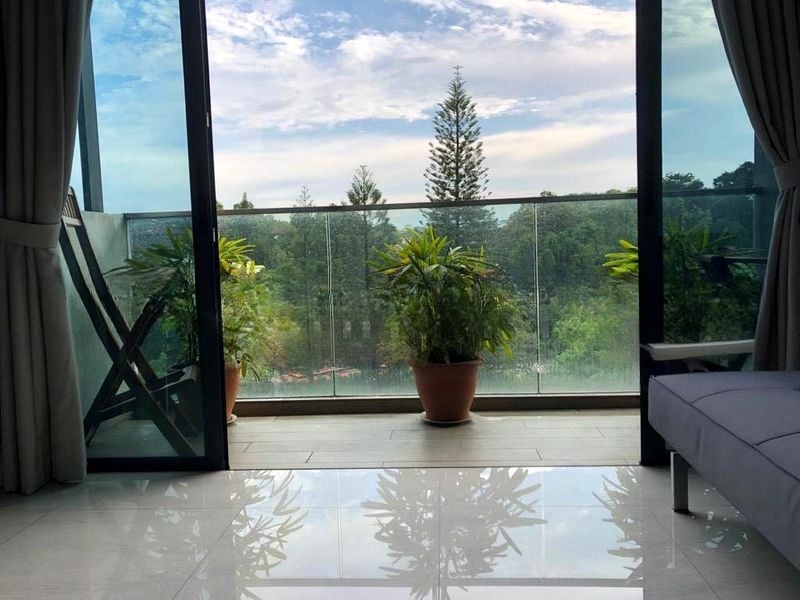 Step into a bright and airy sanctuary at KAP Residences, where abundant natural light floods the open-concept living space, highlighting the designer finishes and high ceilings. Enjoy stunning views of the city skyline and lush greenery from your private balcony, creating a serene backdrop for relaxation.