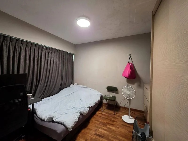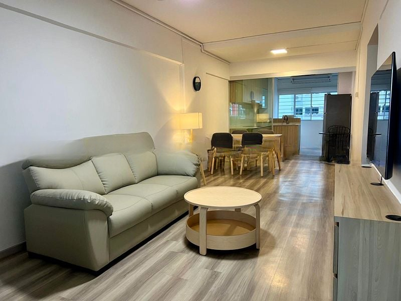Step into this beautifully maintained HDB flat and be greeted by a modern minimalist ambiance that exudes warmth and comfort. The open-concept living room, adorned with wood-look vinyl flooring and stylish furniture, invites natural light to dance across the space, while views of the surrounding greenery and HDB estate create a serene backdrop.