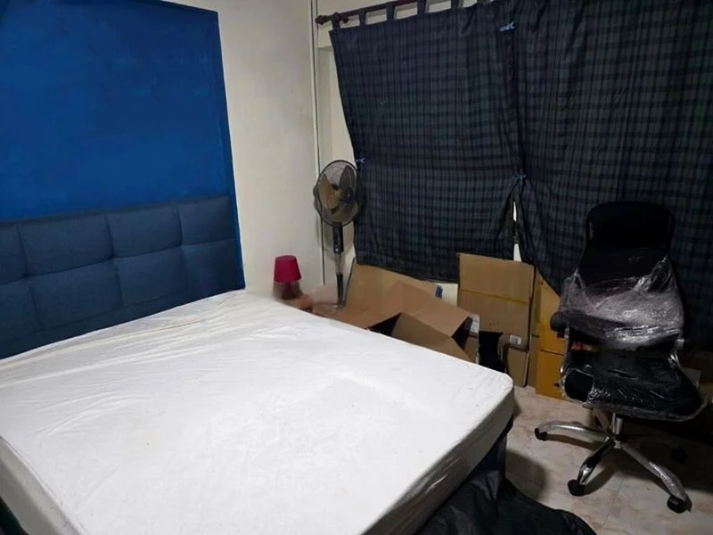 Step into this spacious 3-bedroom flat and feel the functional ambiance envelop you. The tiled flooring throughout and the blue accent wall in one of the bedrooms create a simple yet inviting atmosphere. Natural light may be limited, but the integrated ceiling fan and air conditioning unit ensure comfort in every corner.