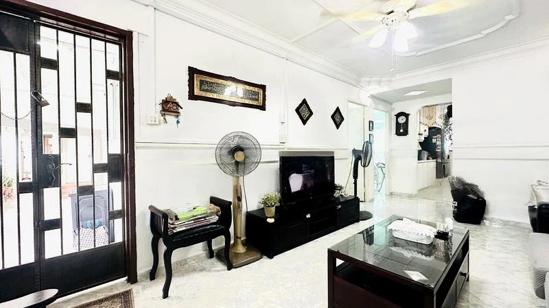 Step into a serene oasis where modern minimalism meets comfort. This well-maintained 2-bedroom flat at 824 Tampines St 81 greets you with wood-look vinyl flooring that flows seamlessly throughout the space, complemented by natural light filtering through roller blinds. The ambiance is enhanced by track lighting and ceiling fans, creating a warm and inviting atmosphere.