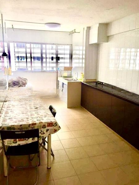 Step into this beautifully renovated HDB flat, where modern finishes and a functional layout create an inviting ambiance. The wood-look tile flooring flows seamlessly throughout the space, complemented by ample natural light filtering through large windows. Enjoy views of greenery and urban buildings, making every moment spent here a visual delight.