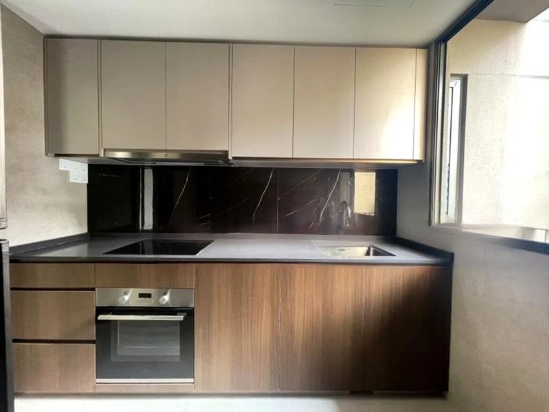 This well-maintained, fully-furnished unit features a modern open-concept layout, seamlessly blending the living and dining areas. The contemporary kitchen boasts dark grey countertops, dual-tone cabinetry, and high-end appliances, perfect for culinary enthusiasts. Retreat to the spacious bedrooms, where large windows offer unblocked views, complemented by minimalist decor and a dedicated study space that enhances functionality.