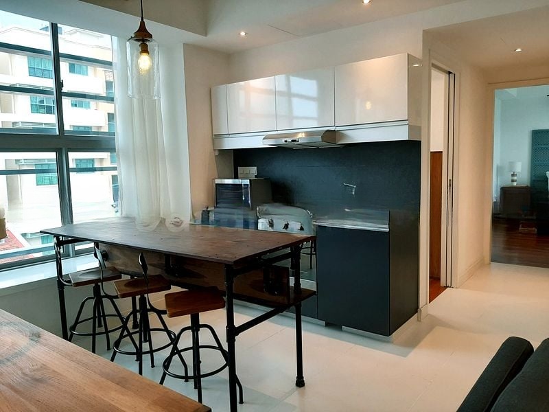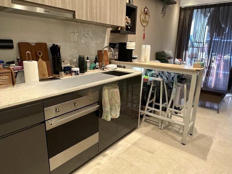 Step into a world of elegance and comfort in this well-maintained 2-bedroom unit at Paya Lebar Residences. Bathed in natural light, the bright and airy living room features stunning marble flooring and large windows that frame picturesque views of the swimming pool and lush greenery, creating a serene ambiance that invites relaxation.