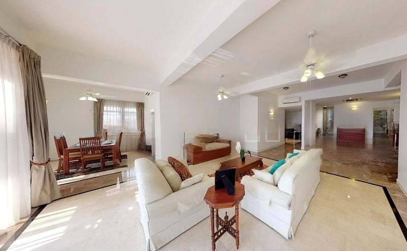 Step into a world of elegance as you enter this beautifully maintained 5-bedroom unit at Leonie Condotel. The abundant natural light floods through large floor-to-ceiling windows, creating a bright and airy ambiance that instantly uplifts your spirit. With polished tile flooring and a solid wooden double door, the entrance sets a sophisticated tone, while the large bay windows in the bedrooms offer serene views and a cozy retreat.
