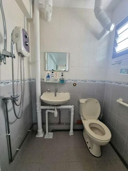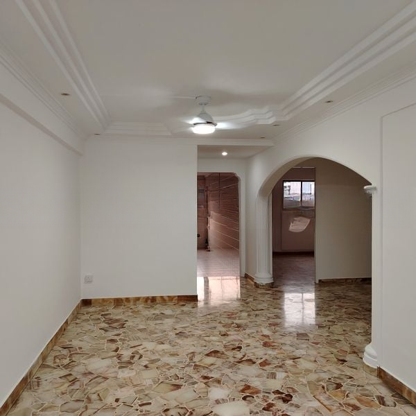 Step into this well-maintained 3-room HDB flat and feel the welcoming ambiance created by its simple yet functional design. The living room, adorned with tiled flooring and elegant crown molding, is bathed in moderate natural light, making it an inviting space for relaxation or entertaining. The integrated kitchen and dining area, featuring light wood cabinetry and modern appliances, seamlessly blends convenience with style.