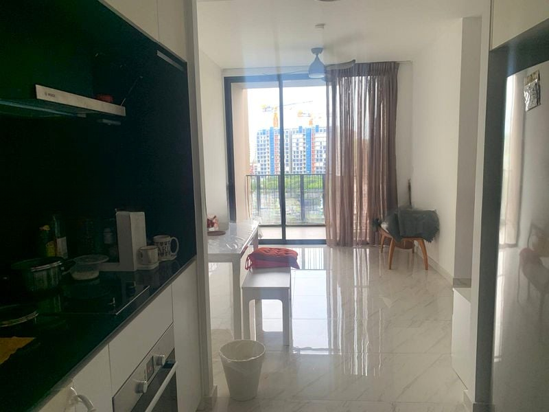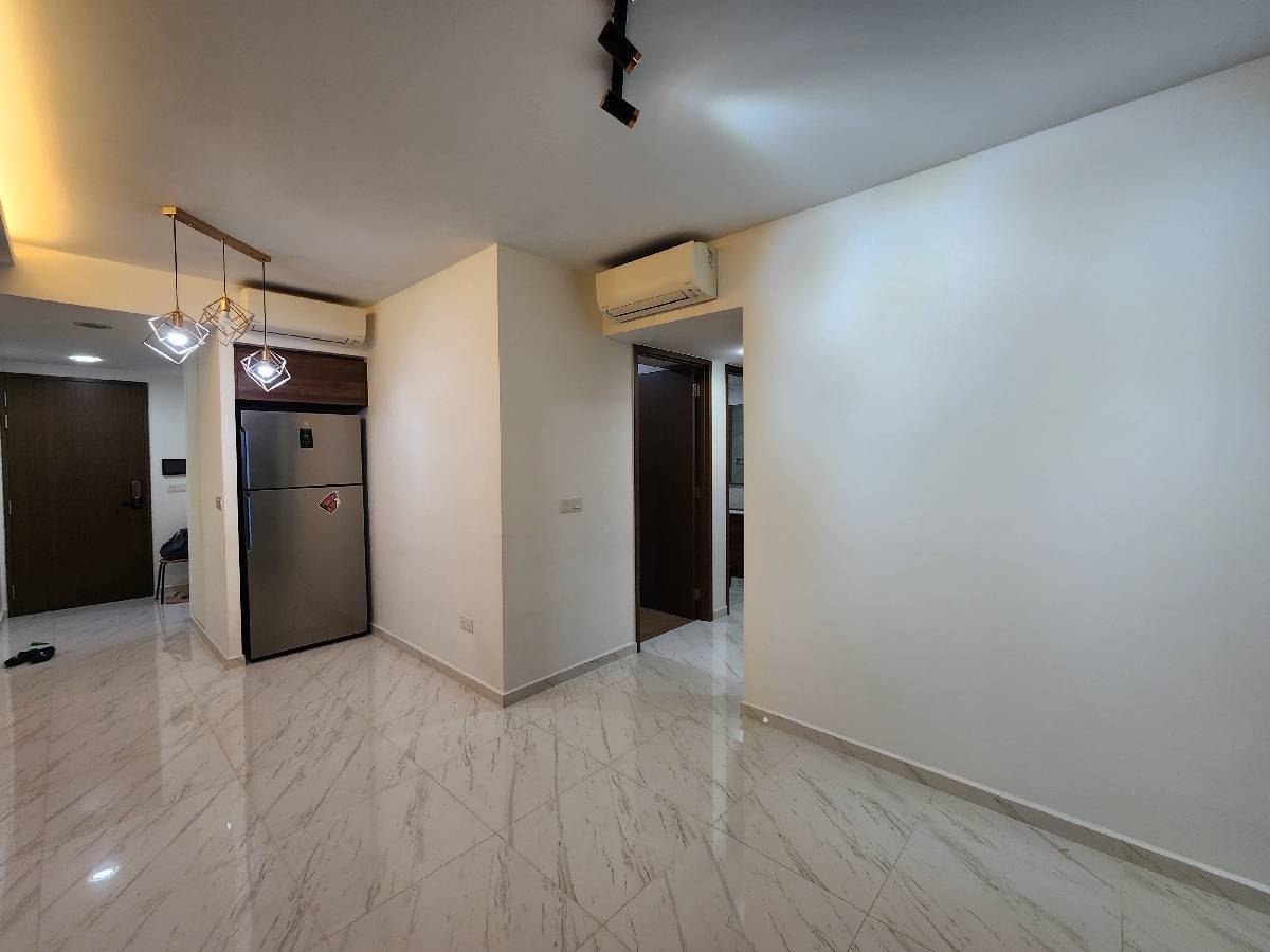 Step into a bright and airy sanctuary at LE QUEST, where abundant natural light floods the space through floor-to-ceiling windows. The open-plan living area, adorned with white tiled flooring, seamlessly connects to a private balcony, offering urban views that inspire relaxation and creativity.