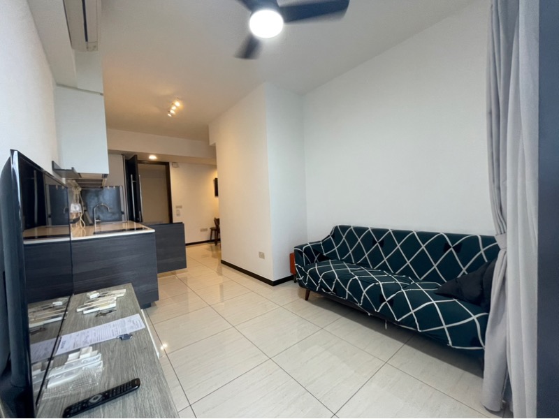Step into a world of modern elegance as you enter this beautifully maintained 2-bedroom unit at Sims Urban Oasis. Bathed in abundant natural light, the open-concept living area features sleek tiled flooring, a stylish TV console, and floating shelves that create a spacious ambiance. Enjoy unblocked views of the city skyline from your balcony, enhancing the contemporary feel of this home.