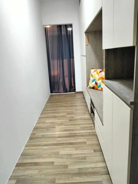 Step into this well-maintained studio flat and be greeted by a functional yet inviting ambiance. The light-colored tiled flooring enhances the space, while the built-in seating nook and floor-to-ceiling cabinets offer both comfort and practicality. Natural light filters through, creating a warm and welcoming atmosphere.