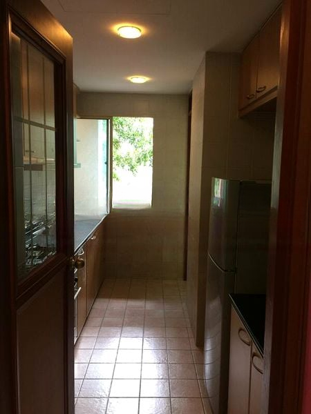 Step into this beautifully renovated unit at Yishun Emerald, where modern minimalist design meets abundant natural light. The open living area features light-colored tiled flooring and a sleek wall-mounted TV, creating a welcoming ambiance. Enjoy the seamless flow of space enhanced by under-cabinet LED lighting, while large windows frame stunning views of lush greenery.